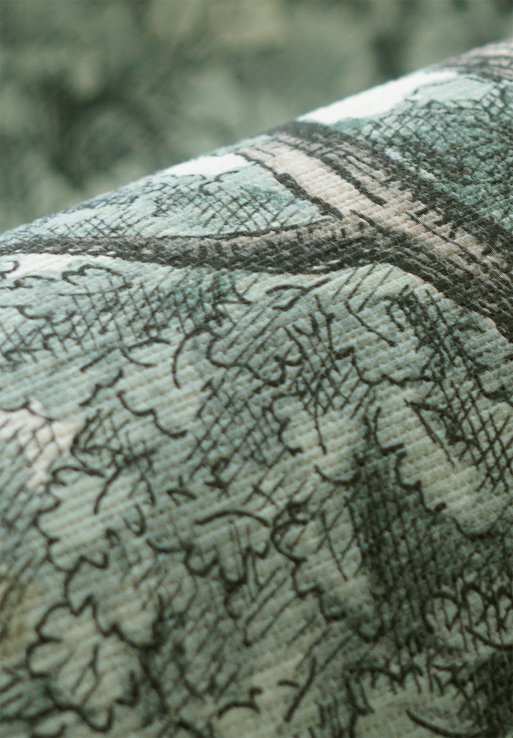 This panorama created by Martine Dubreucq and Isabelle Parmentier, artist-designers, transports us to the great French state forests. Months of meticulous work inspired by the historical domains often represented by 18th and 19th century artists. Fontainebleau, Chantilly, Compiègne, Rambouillet... castles and beautiful residences are not far away. This work done with pencil and black stone, enhanced with pen, symbolizes what we have of more precious, the Nature. Oaks, acacias, birches, poplars, hazel trees, compose a landscape where it will be good to recharge your batteries... Enter this new landscape and let yourself be carried away.