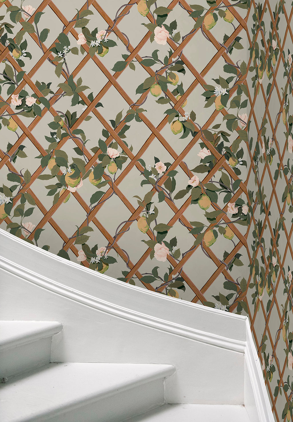 Impregnata dell'essenza del Mediterraneo, la carta da parati Trellis presenta un motivo a traliccio senza tempo, ornato da limoni vivaci e fiori delicati, ispirato dalla rinascita dei motivi a traliccio nell'arredamento contemporaneo. Evocando il fascino solare dei giardini mediterranei, ogni pannello dal design intricato invita a crogiolarsi nel calore del fogliame floreale e ad abbracciare il fascino di una raffinatezza senza tempo.